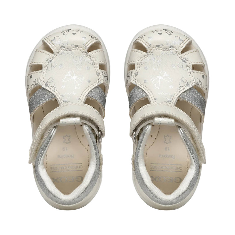 The Geox B Sandal Zapito baby sandals in pure white combine absolute elegance with the specialized protection that the first steps require.