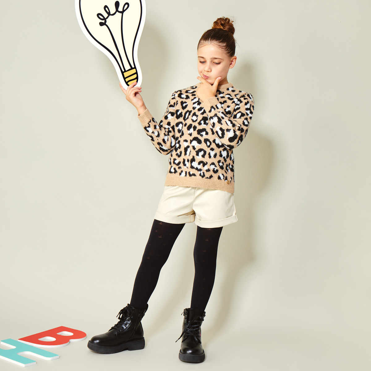 Eco-leather shorts with elastic and belt at the waist. Side pockets and turn-up at the bottom.