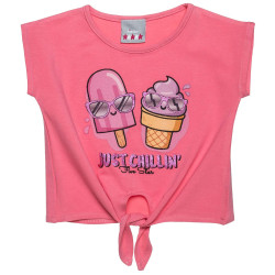 Blouse that ties at the front with an embossed design decorated with glitter. }