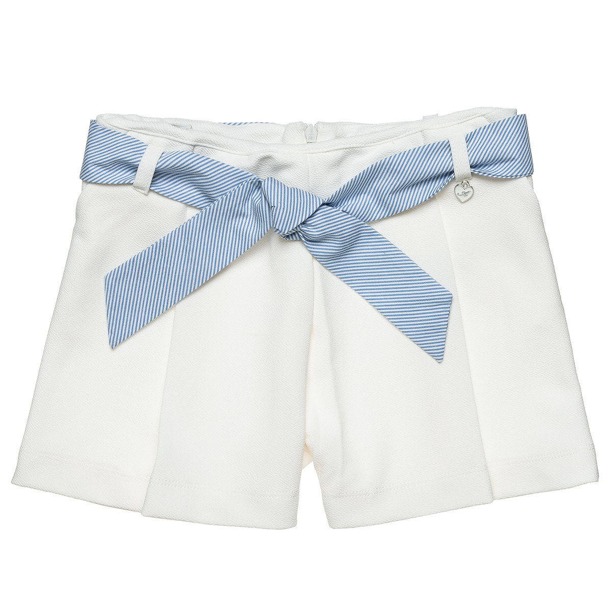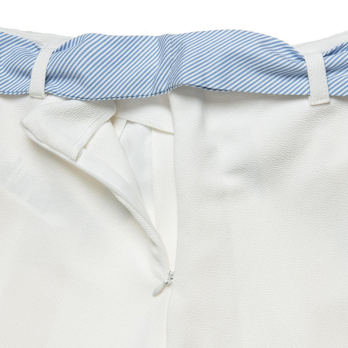 Wafer crepe shorts from soft light fabric suitable for summer. It has a striped detachable belt and pleats on the front. Closes on the back with a zipper. Can be combined with blouses and shirts for a complete stylish look!
