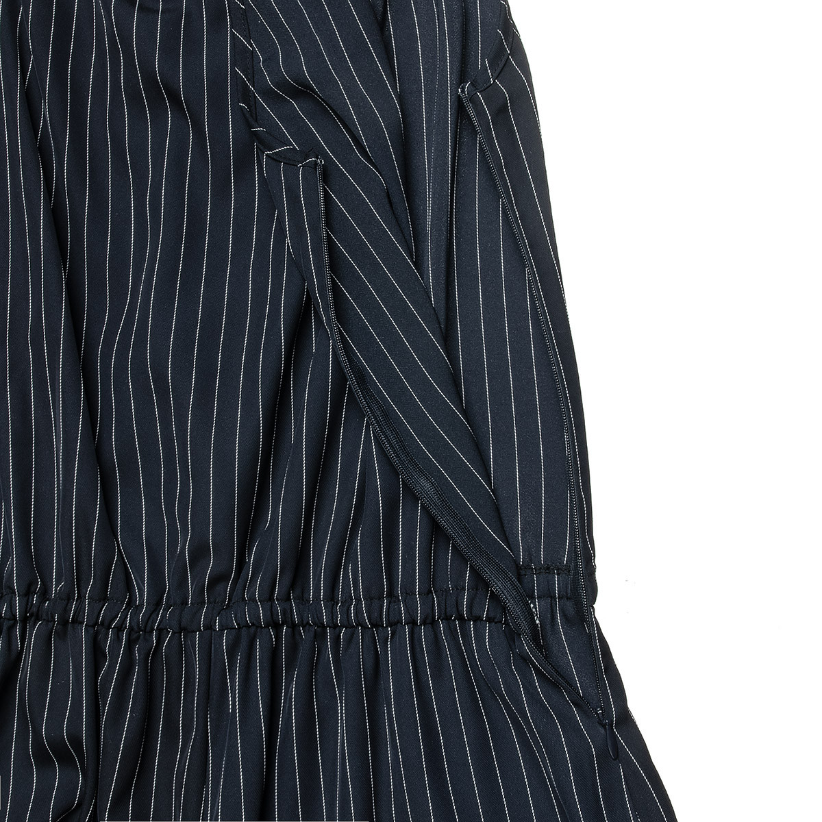 One-piece shorts with thin white stripes. It has a fringe in the middle for a better fit and a detachable belt.