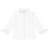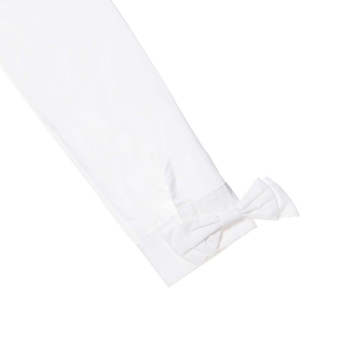 Cotton shirt with rhinestones on the collar. Closes with hidden buttons on the front, has decorative bows at the end of the sleeves and a small cut on the sides.