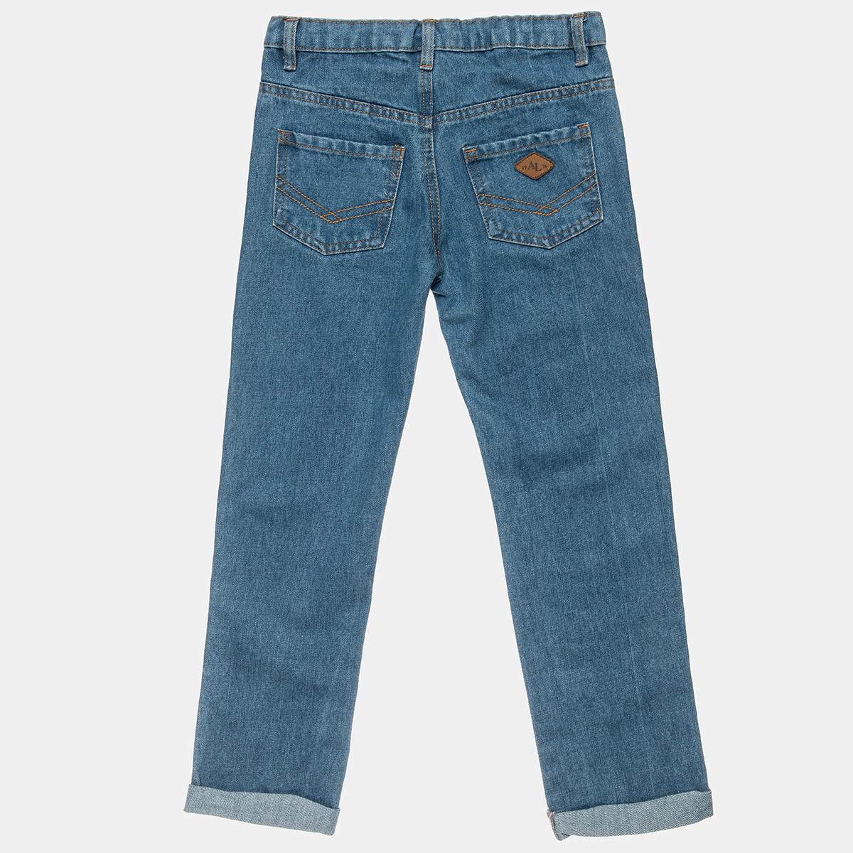 Jeans in a straight line with adjustable elastic inside the waist and turned finish.