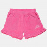 Sleeveless blouse with embossed tulle flowers on the front and print decorated with glitter. Ties forward. }