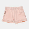 Shorts with a subtle print and ruffles at the bottom.
