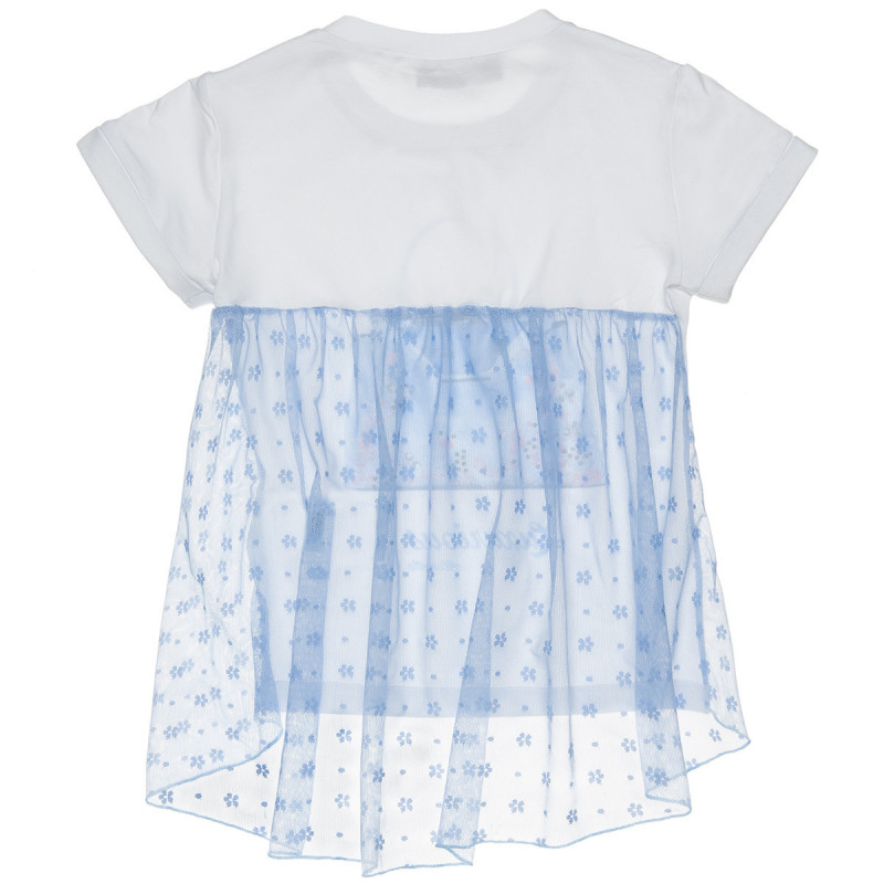 Μπλούζα απο βισκόζη με κοντό μανίκι για κορίτσια.Διαθέτει στο πίσω μέρος λεπτομέρεια απο τούλι.Πρόκειται για ένα ιδιαιτέρως ευαίσθητο ύφασμα, για αυτό απαιτεί φροντίδα και προσοχή κατά το πλύσιμο και το σιδέρωμα.