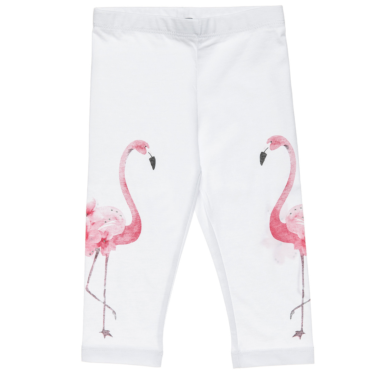 Cotton capri leggings. It has a print with flamingo and rhinestone details on it, it has elastic in the middle for better fit and stability. Ideal for everyday use, at school, on vacation, everywhere!