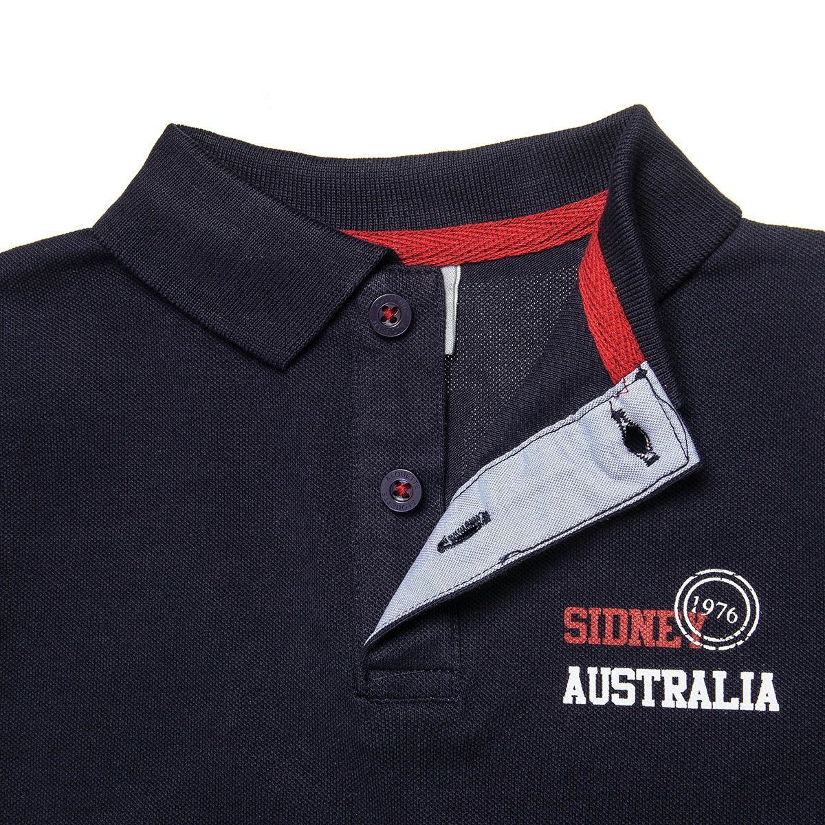 Cotton polo cotton blouse with a classic collar and short sleeves. It has a partial front opening with buttons, side openings and a print on the front side. It also has an impressive "Shark 76" print on the back. It is an easy choice for everyday use at school, on walks, on vacation, everywhere and can be combined with Bermuda shorts, overalls, jeans. Available in Dark Blue and White.