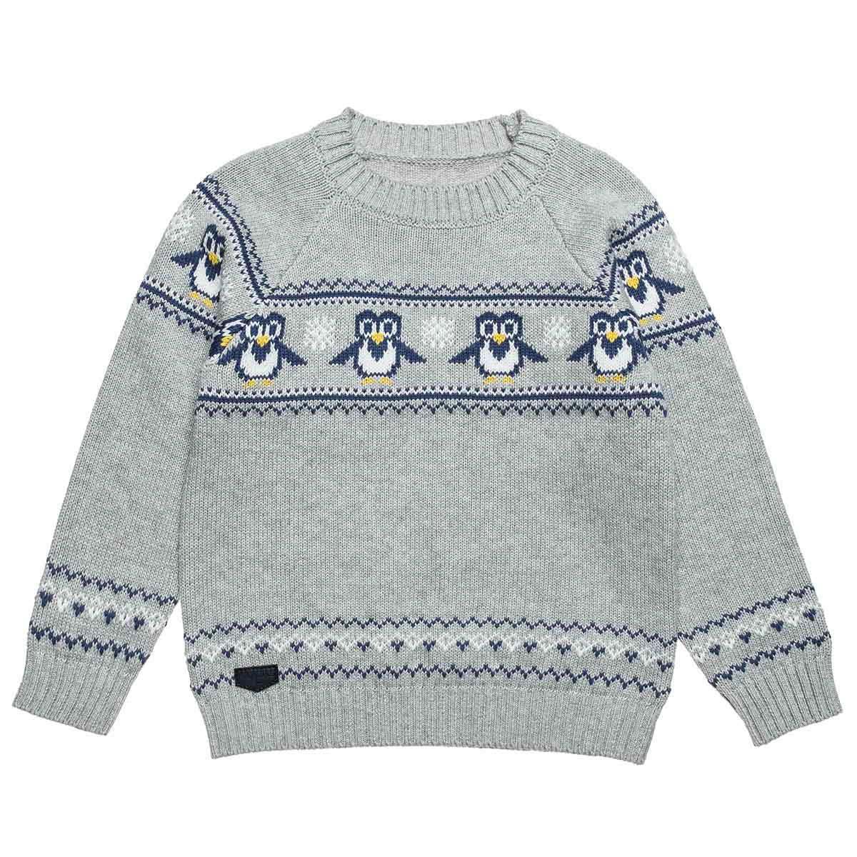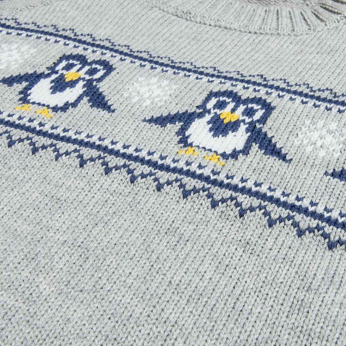 100% cotton sweater with a cute penguin pattern. Ribbed neckline, sleeve ends and bottom.