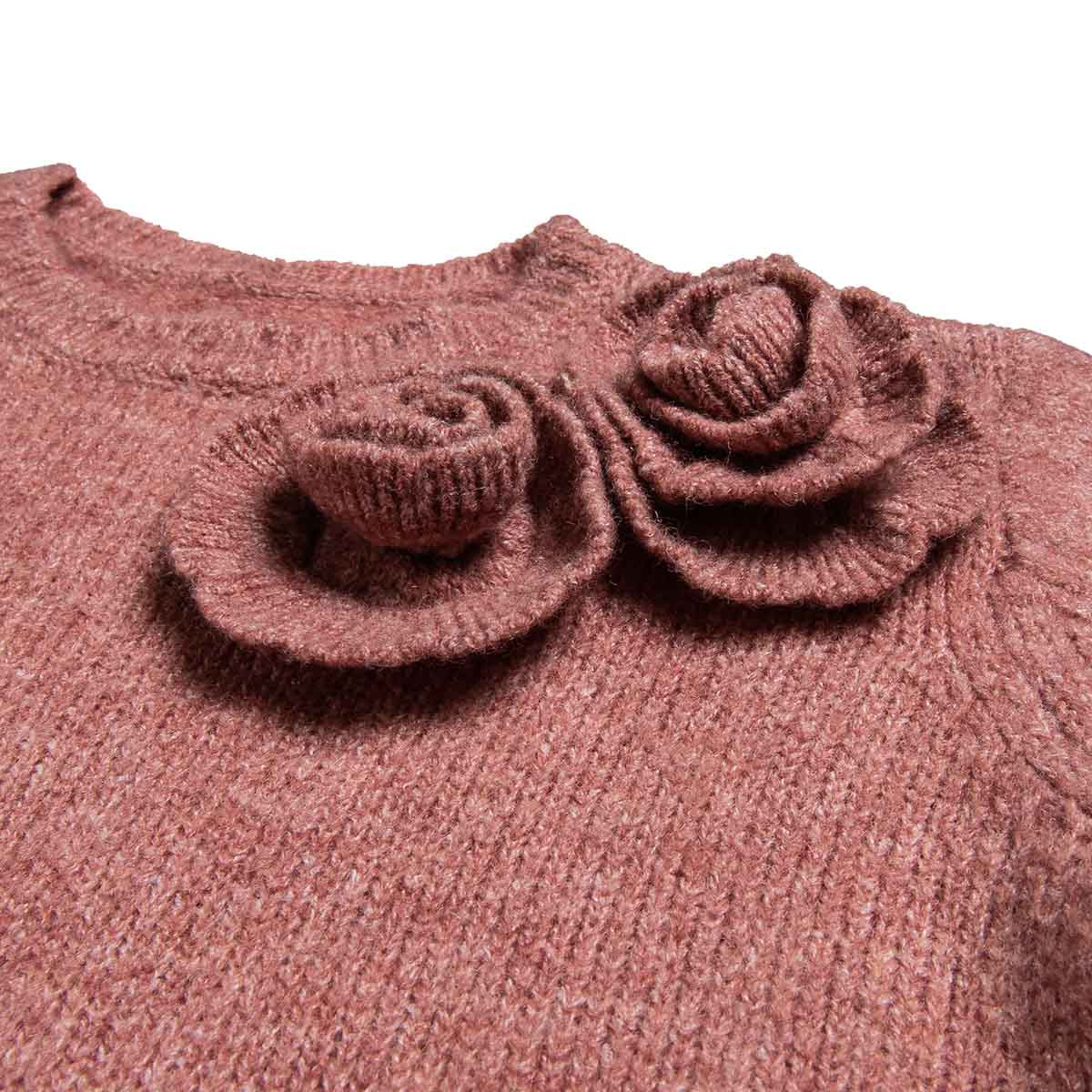 Sweater with appliquéd flowers. Ribbed neckline, sleeve ends and bottom.