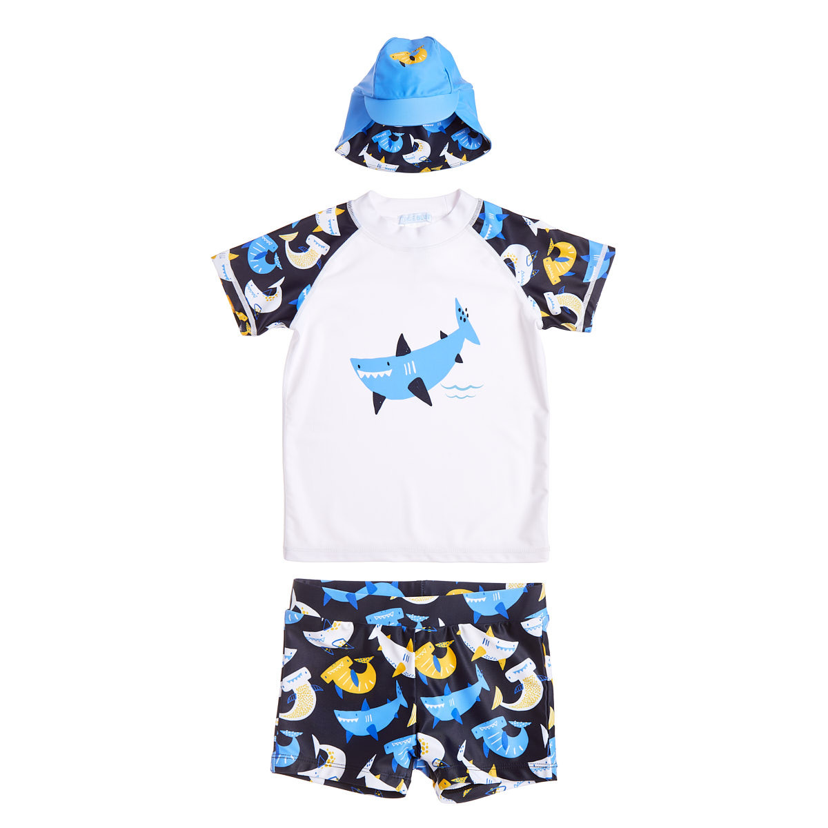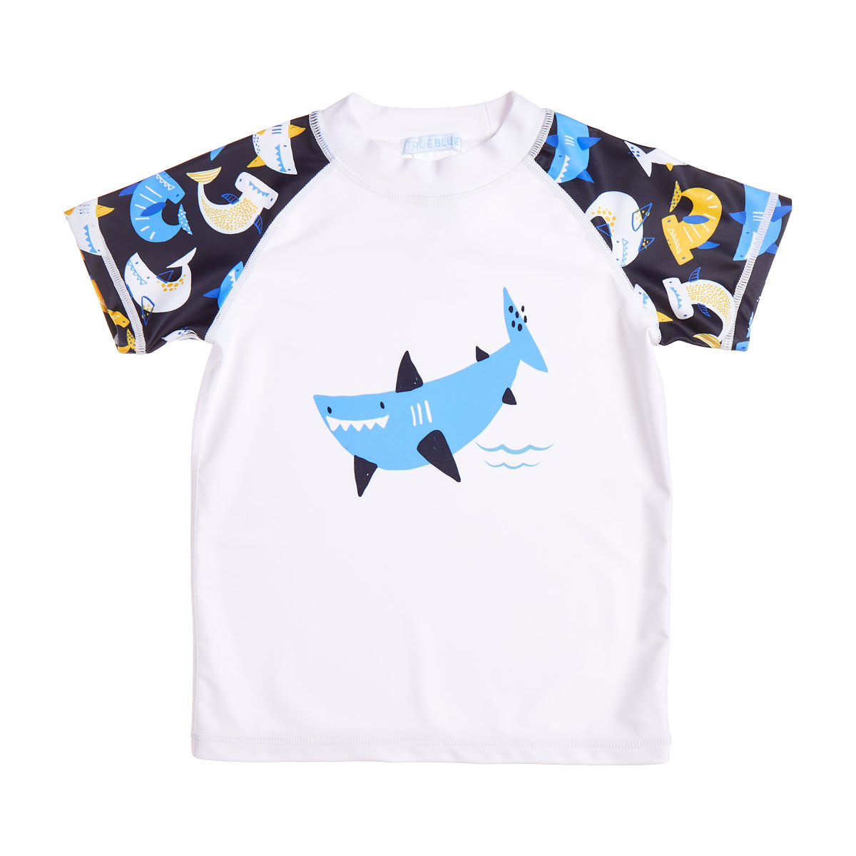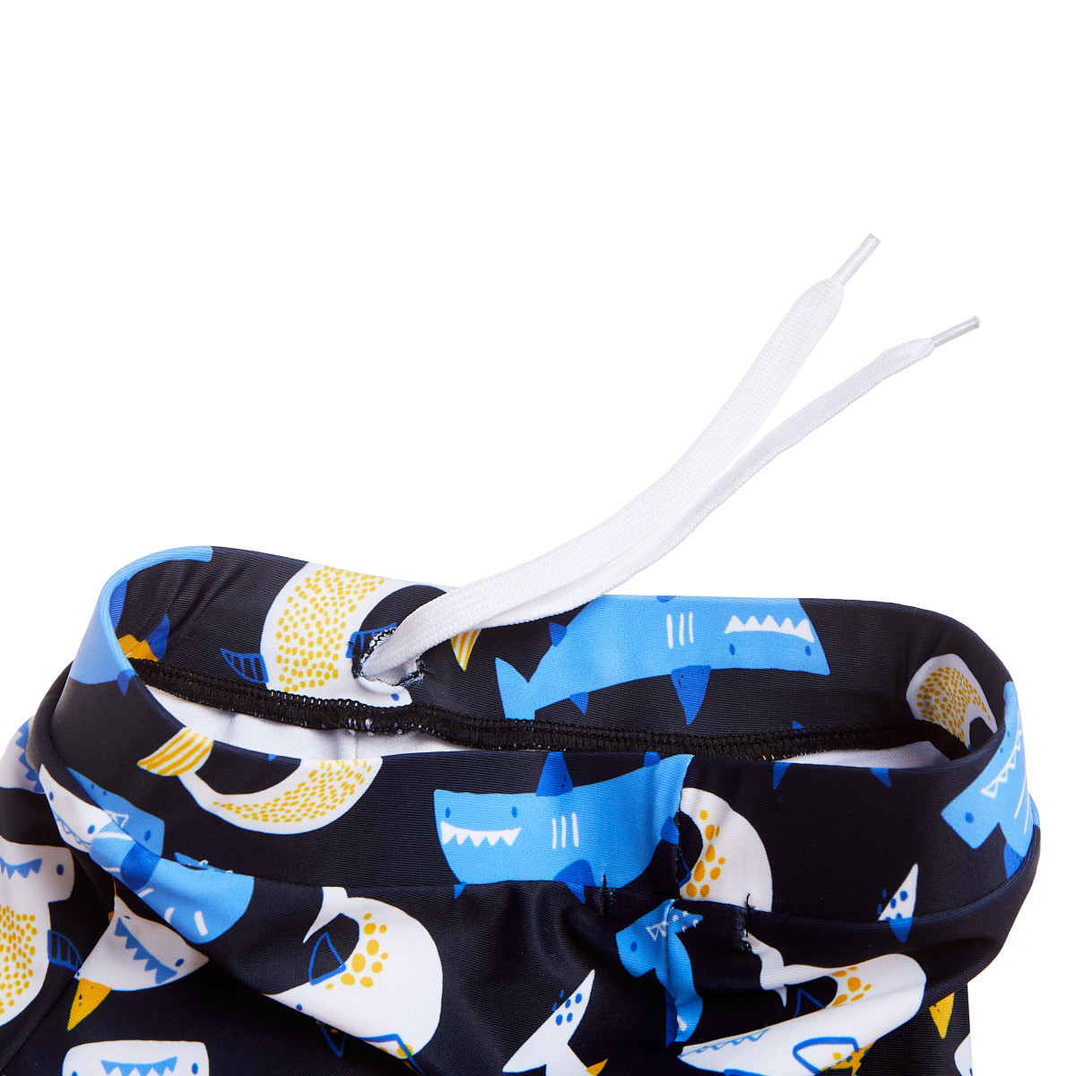 Shorts with elastic waist and drawstring inside for a better fit and shark pattern.