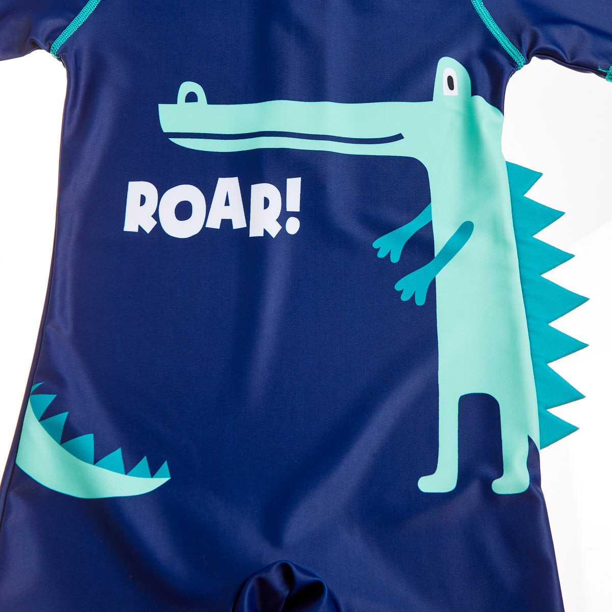It has a zipper on the back for easy application and a print on the front with embossed details on the side.