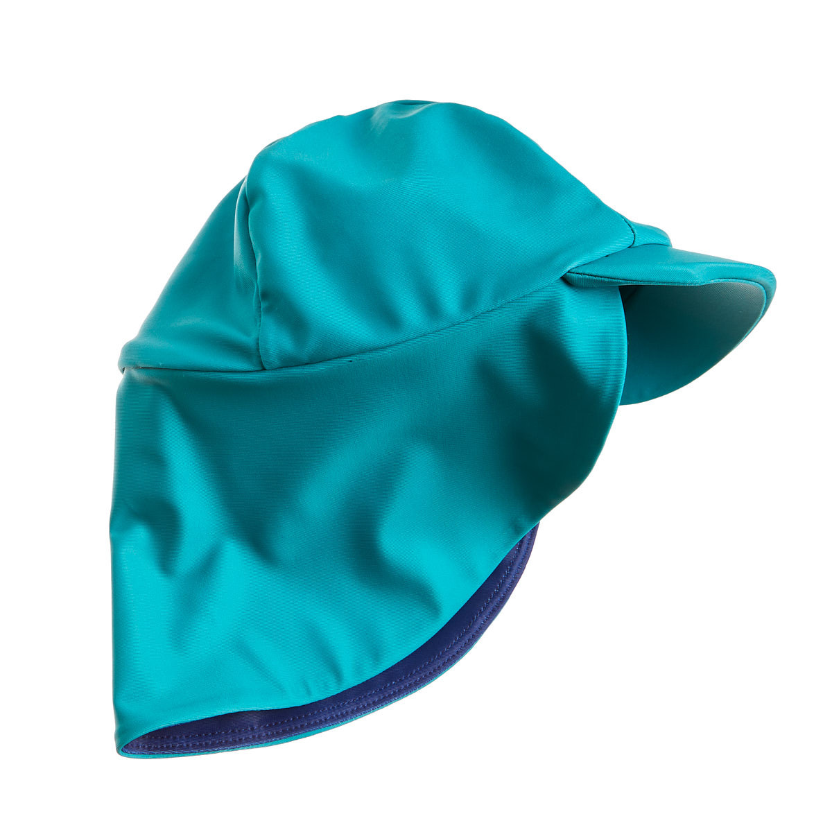 A hat with a visor, legionnaire type, protects the child's head, ears and neck in a beautiful green color with a crocodile pattern.