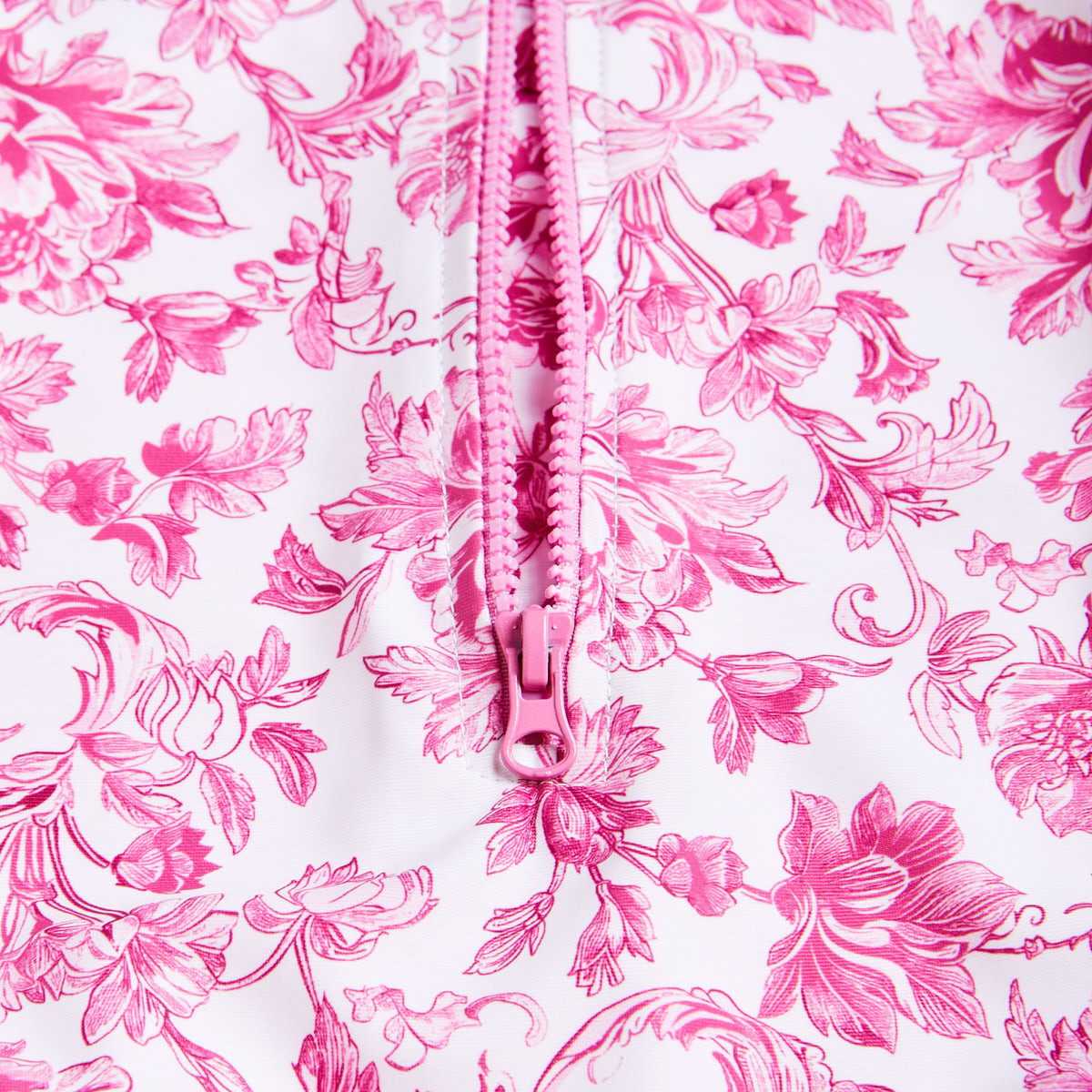 It features a floral pattern and ruffles on the sides.