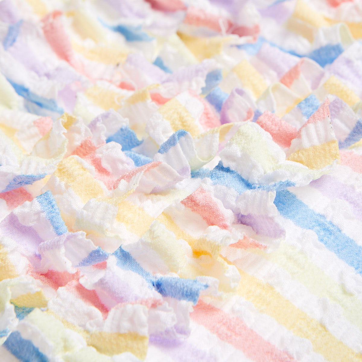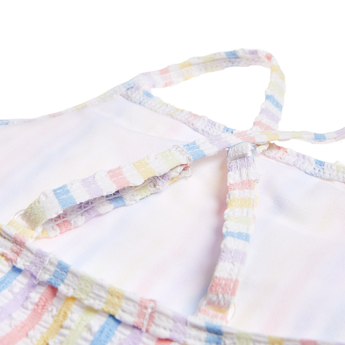 True Blue one-piece swimsuit with a crisscross back, thin adjustable straps, a textured finish and a ruffle at the bust.