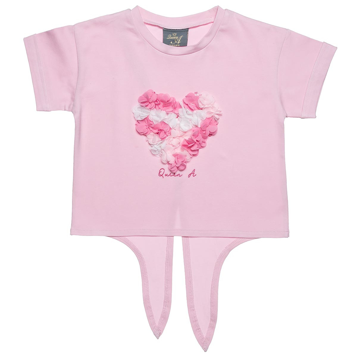 Blouse with a tie at the back and an impressive embossed heart-shaped design on the front.