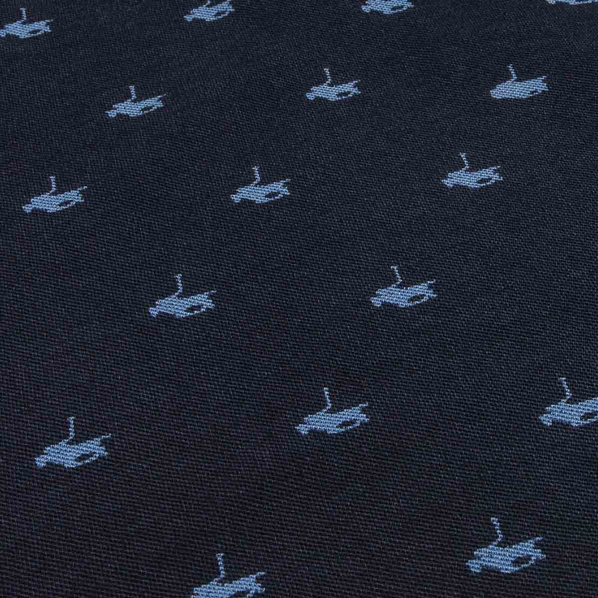 It has a partial front opening with buttons, side openings and a Greenwich logo pattern.
