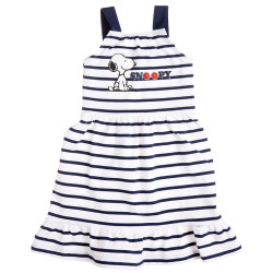 Snoopy cotton dress with straps and front print with embossed elements. Back design with small opening and wavy finish. }