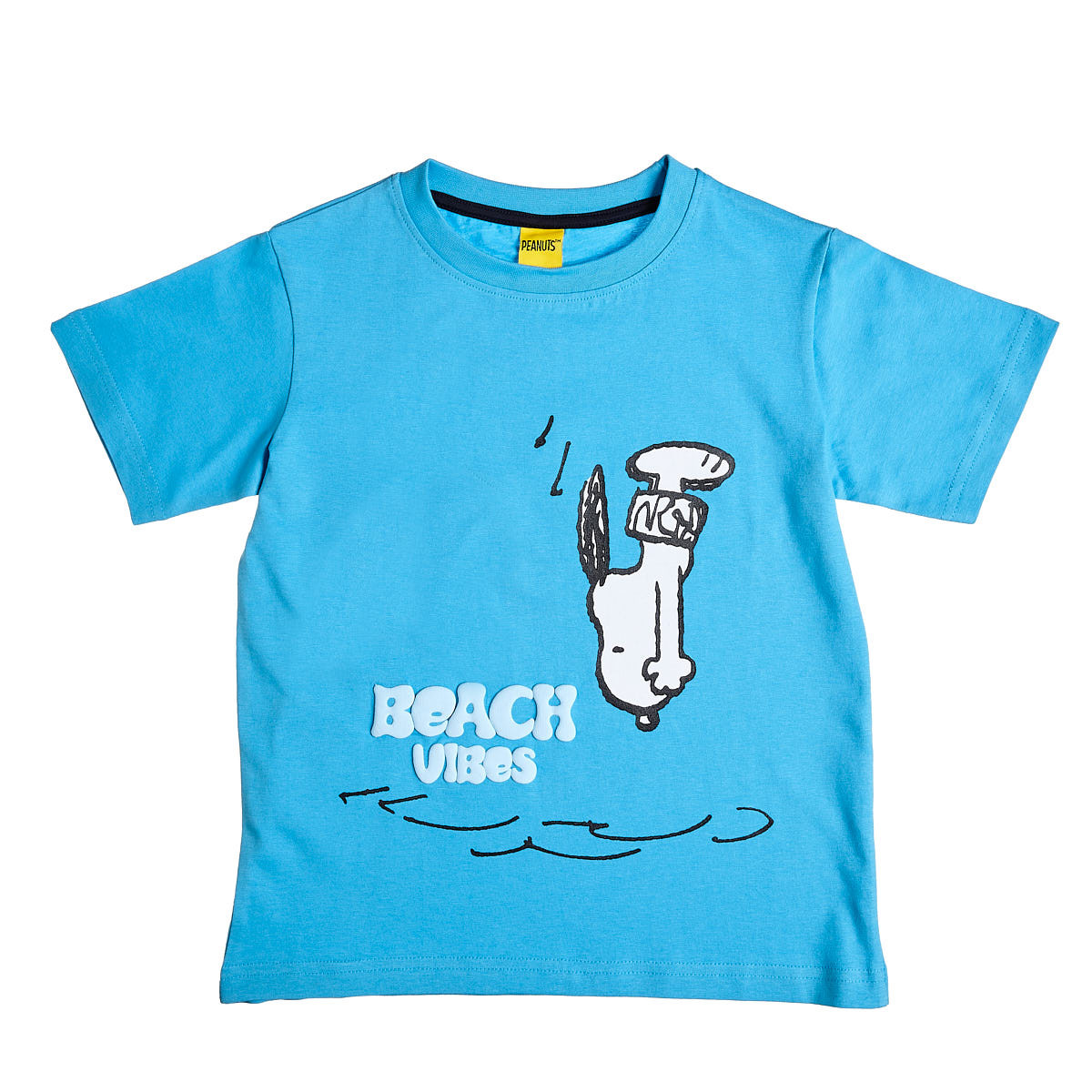Snoopy T-shirt for boys, made of 100% cotton fabric, with a print on the front decorated with embossed elements.
