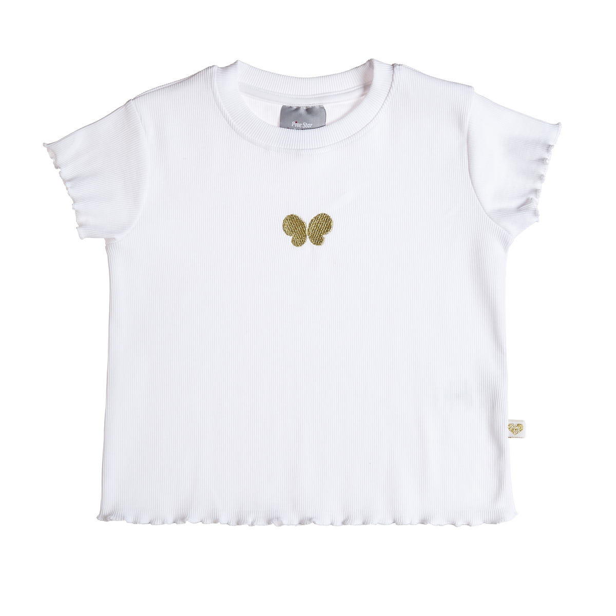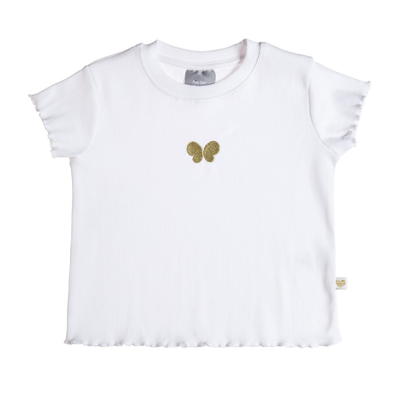 Cotton blouse with rip weave, embroidery on the front with metallic gold thread and wavy finishes.