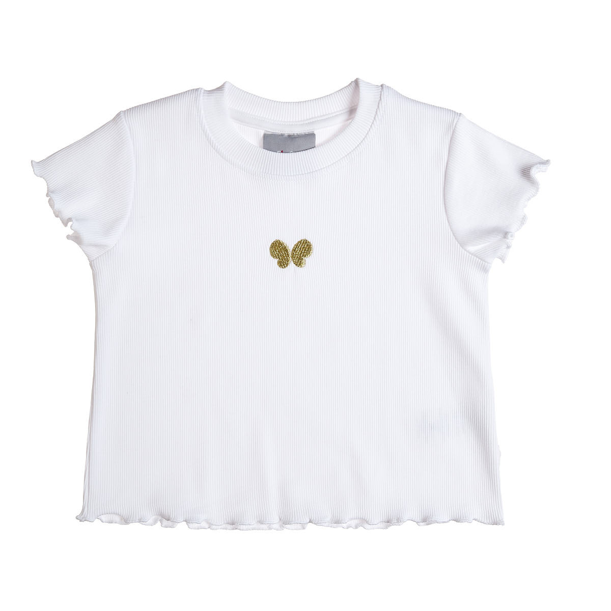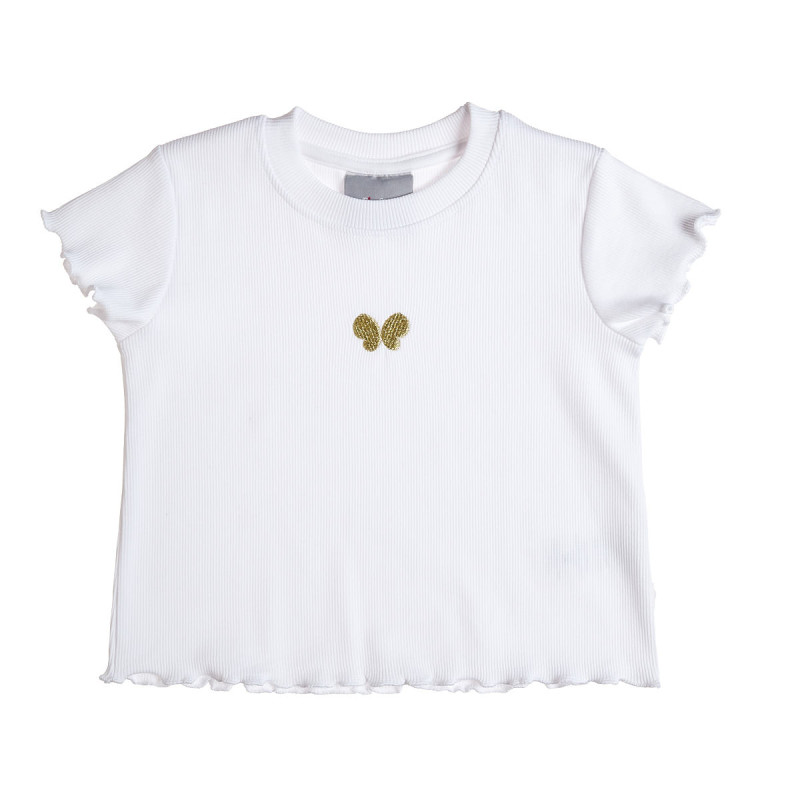 Cotton blouse with rip weave, embroidery on the front with metallic gold thread and wavy finishes.