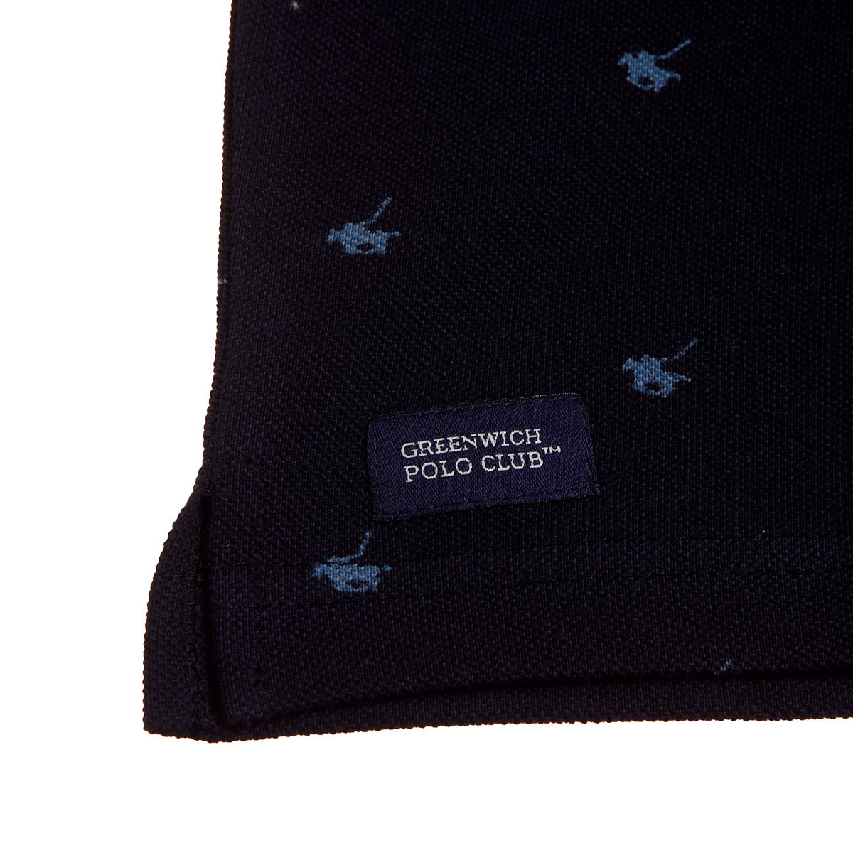It has a partial front opening with buttons, side openings, embroidery and a pattern with the Greenwich logo.