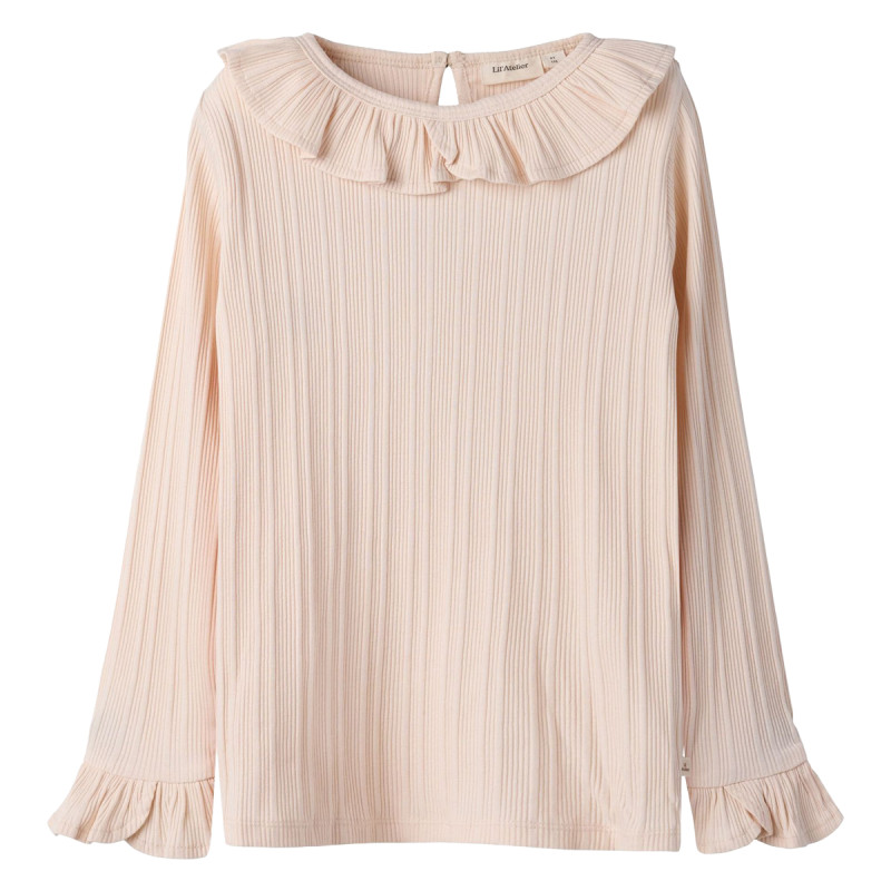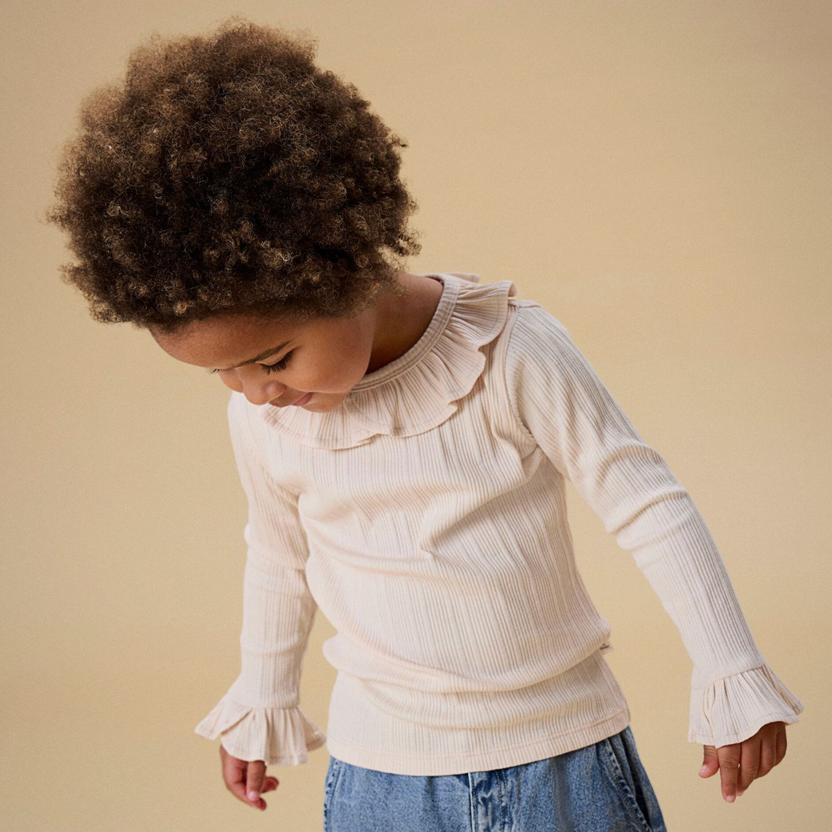 Lil'Atelier ribbed blouse with cute ruffles at the neckline, made of a soft blend of organic cotton and TENCEL™ Modal for an ultra-soft feel and comfortable fit all day long.