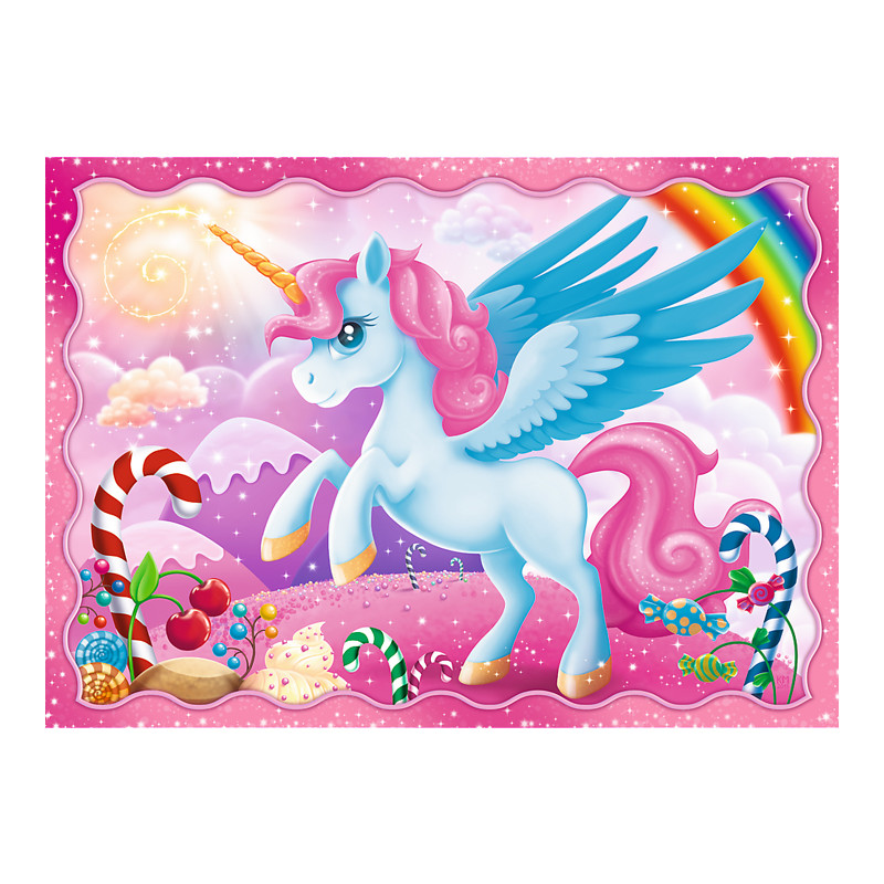 4 in 1 puzzle, 35pcs/48pcs/54pcs/70pcs, with Unicorn theme.