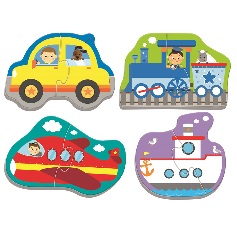 2-piece puzzle in 4 different designs, with vehicles and transport.