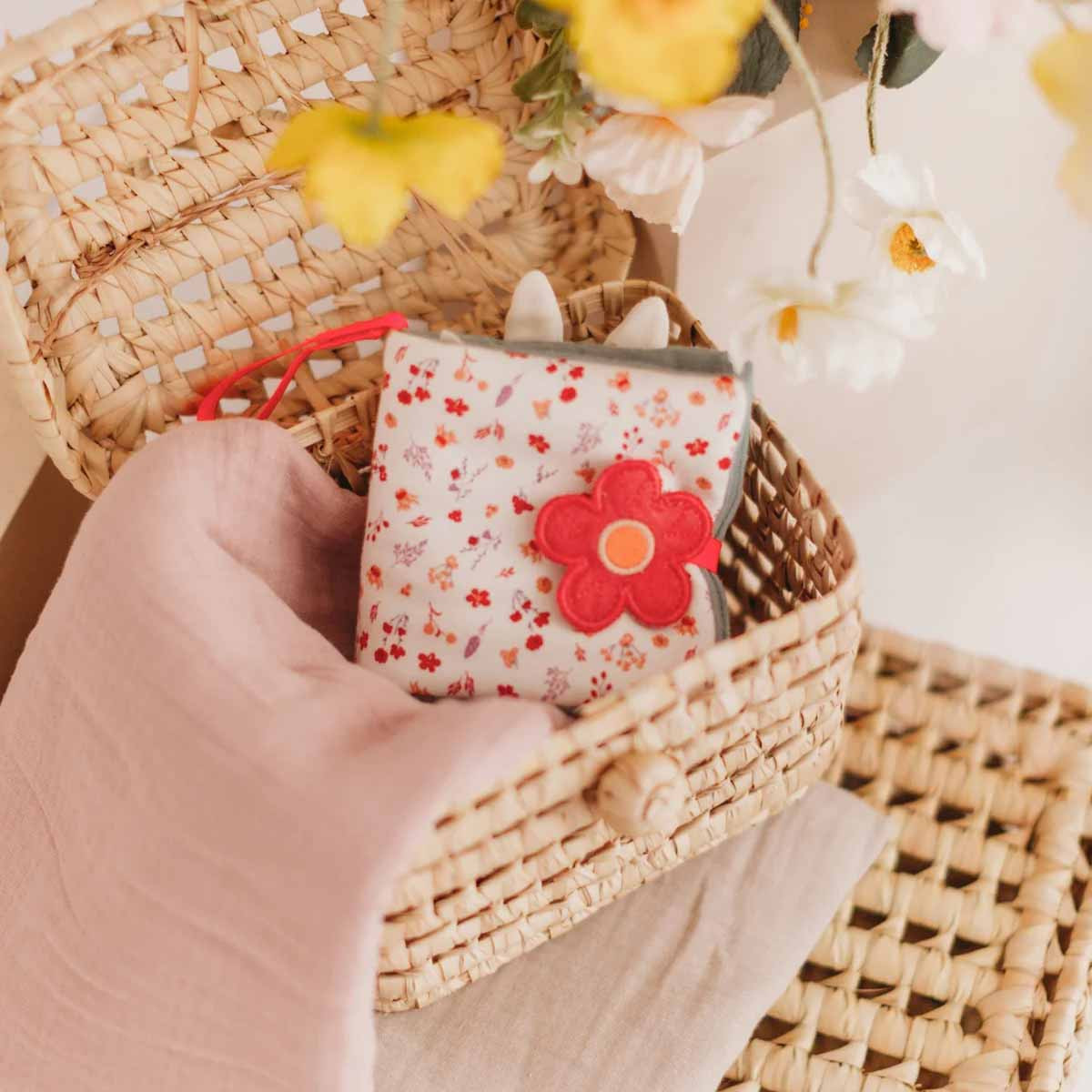 The soft lamb book encourages tactile exploration and stimulates the senses.