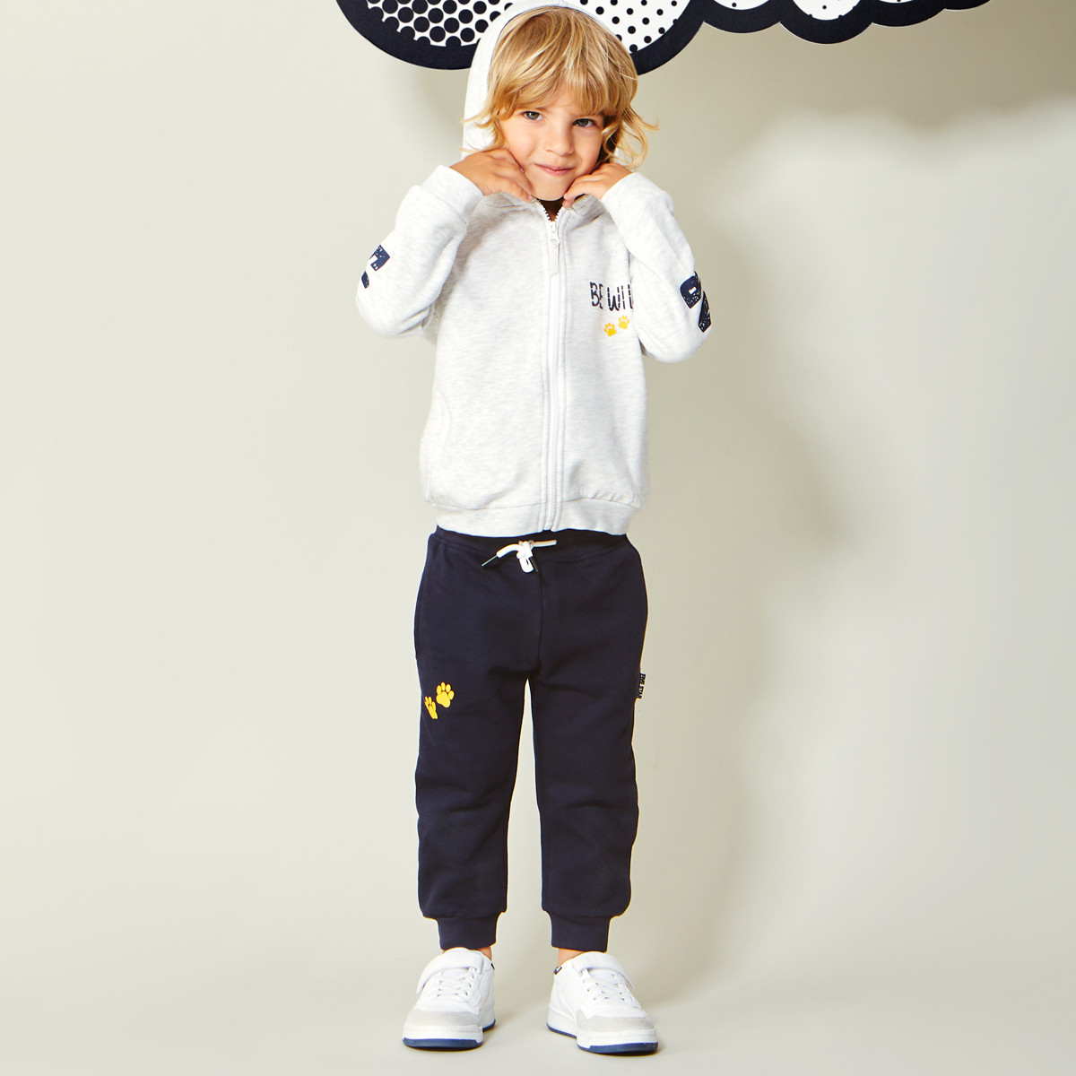 Hooded vest-jacket with embroidery throughout. It has an interior lining made of eco-fur and a label for the child's name. Front zipper with chin guard and 2 side pockets. }
