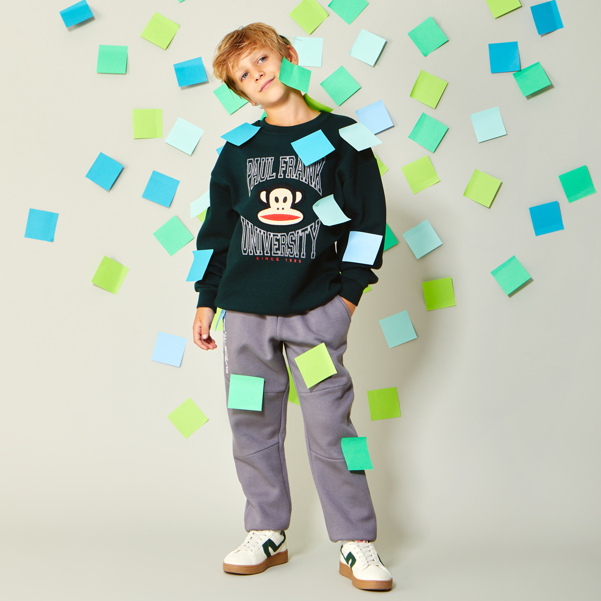 Paul Frank tracksuit set made of sweatshirt fabric with a fluffy texture on the inside for an extremely soft feel and greater warmth.