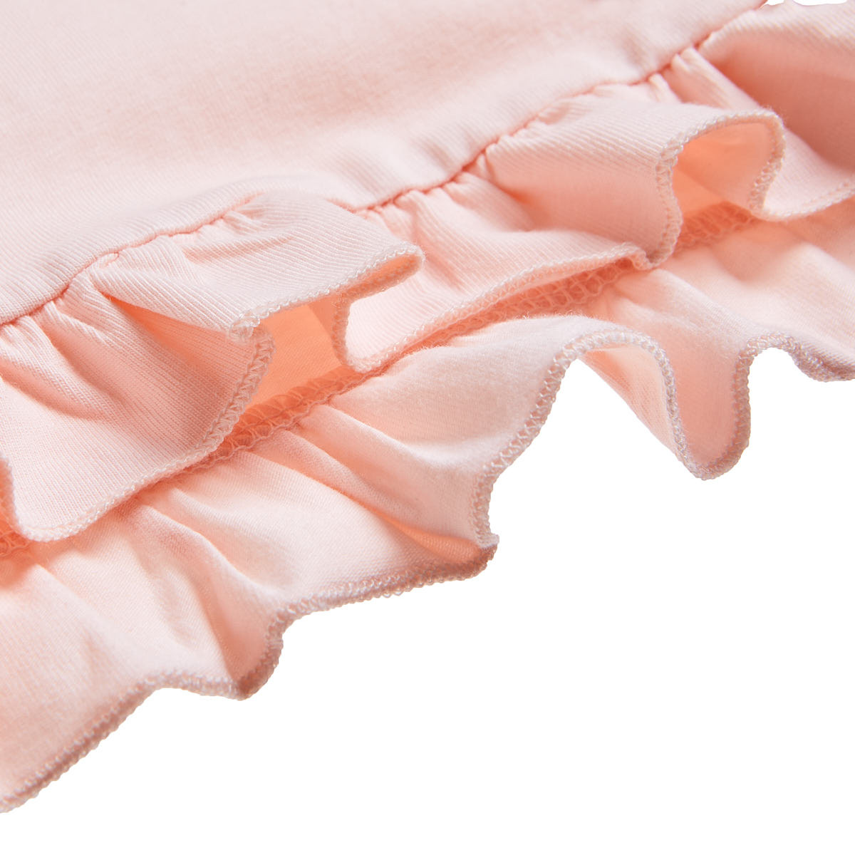 Shorts with elastic at the waist, embossed print on the leg and ruffle at the end.