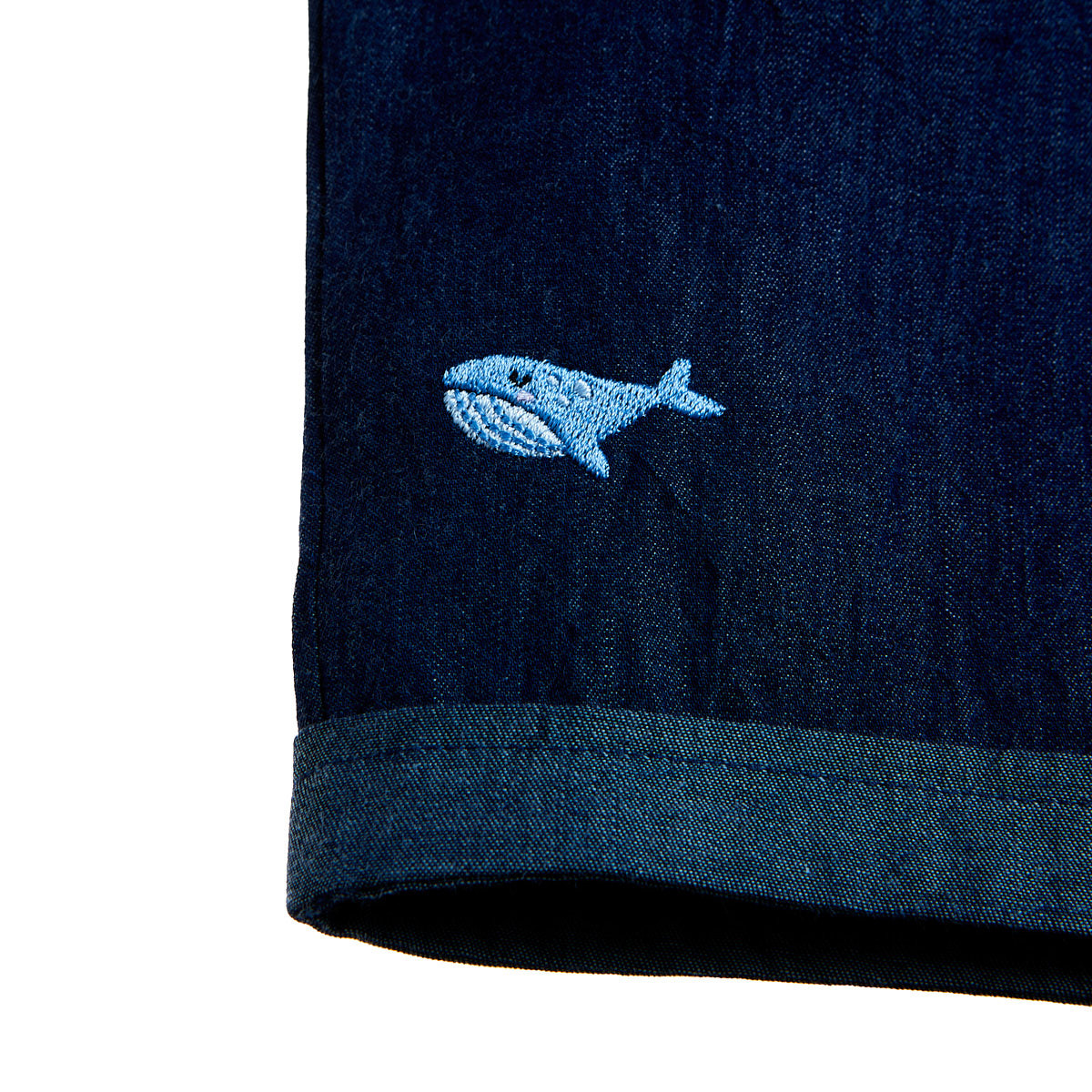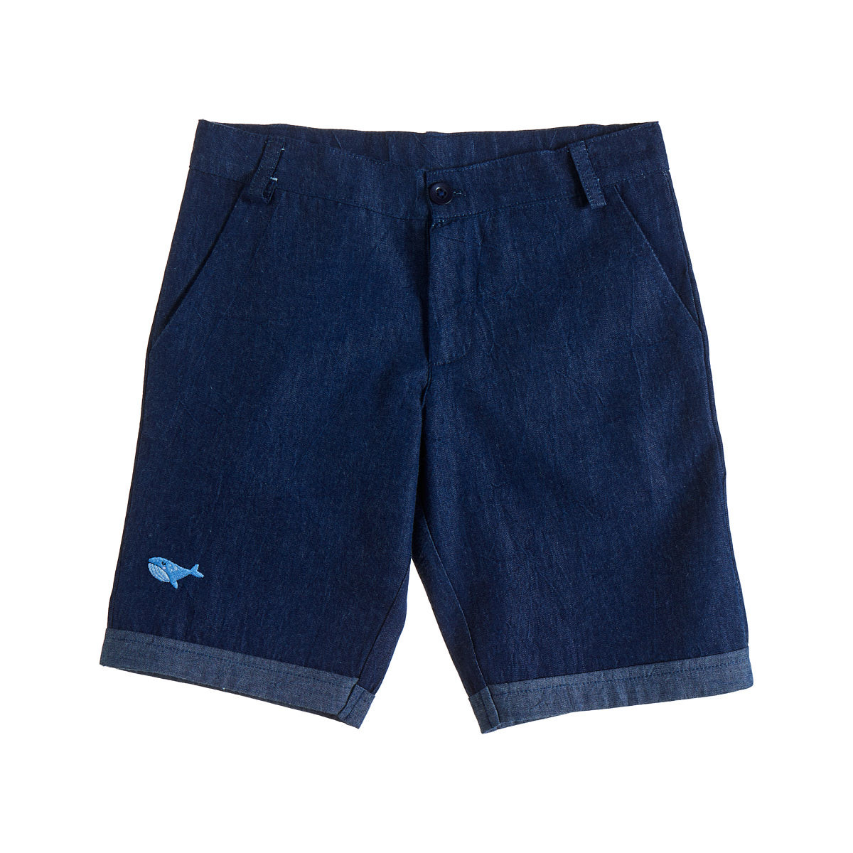 Shorts with an internal button at the waist and an adjustable elastic band to adjust the fit, side pockets and discreet embroidery at the hem.