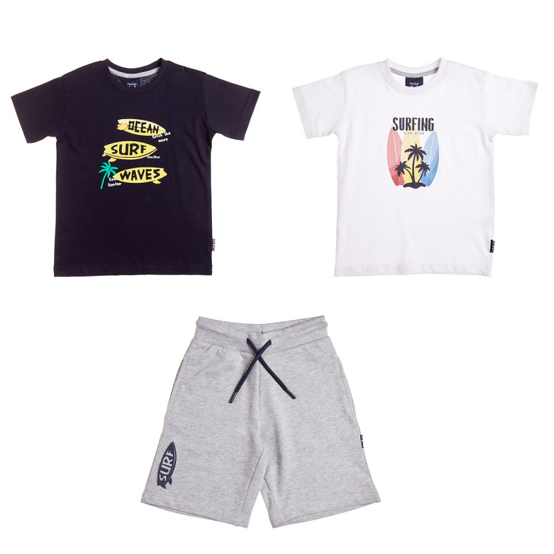 Five Star 3-piece set for boys, made of 100% cotton fabric, consisting of 2 shirts and shorts.