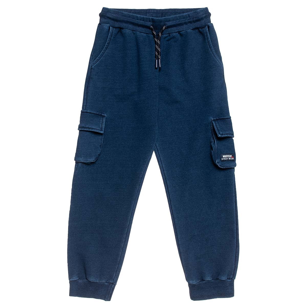 Moovers tracksuit pants with practical cargo pockets on the legs, made of extremely soft and lightweight denim fabric, ideal for little explorers who want to have the essentials with them.