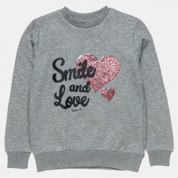 Sweatshirt with heart-shaped sequins on the front. It has a fluffy texture on the inside for a super soft feel and extra warmth. It has elastic at the end of the sleeves and at the bottom. }
