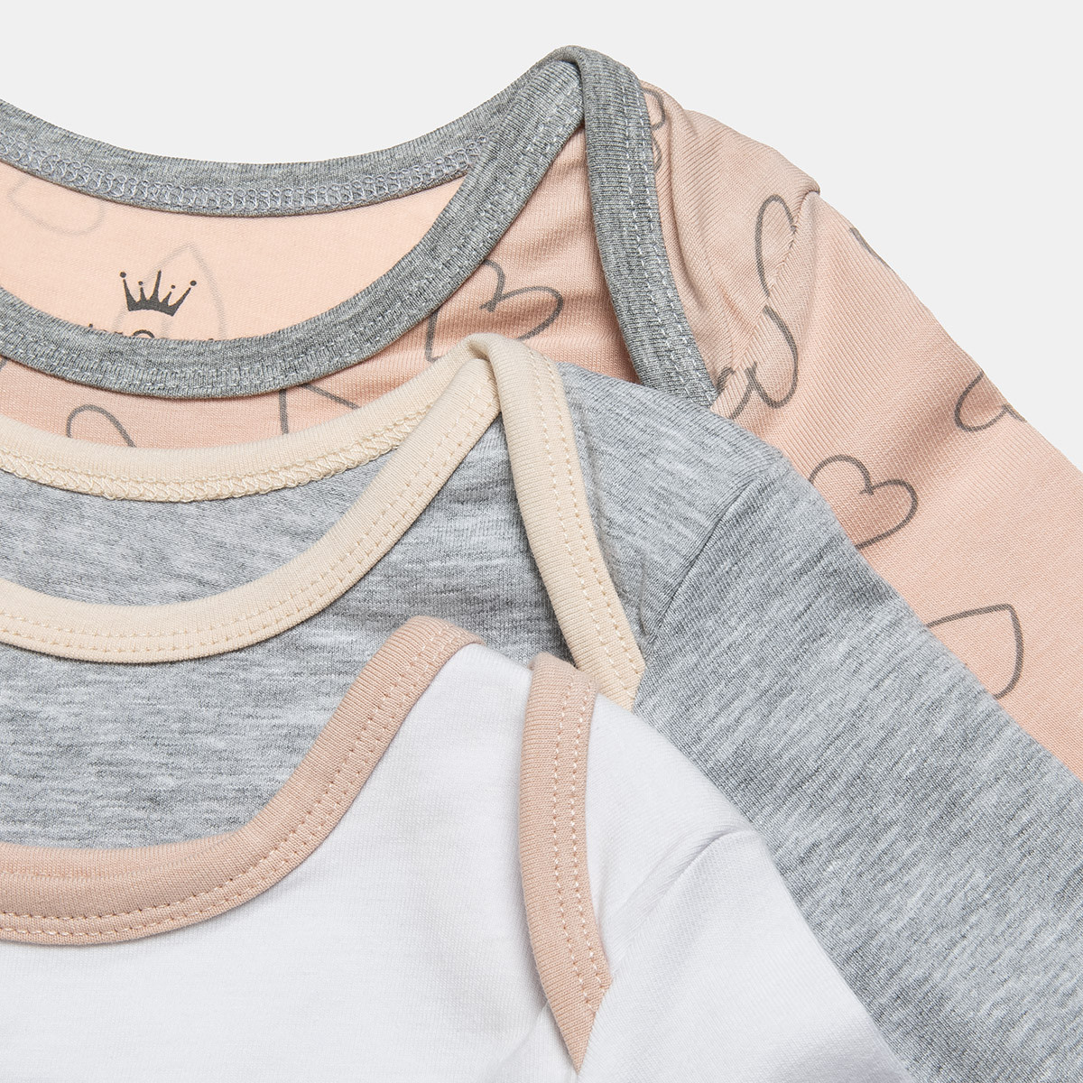Tender Comforts long sleeve babygrow made of pure organic cotton, 3-piece set, with hearts print.