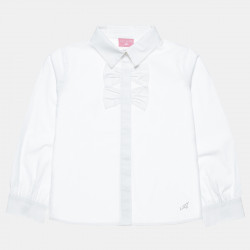 Cotton shirt with pearls on the button of the collar. It closes with hidden buttons at the front, has decorative bows at the front and pearl buttons at the sleeves. It is an ideal choice for better occasions as well, combining comfort and style! }