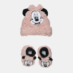 Disney Minnie Mouse set with lamb texture, consisting of a hat and cuddly slippers and covers age up to 6 months. }