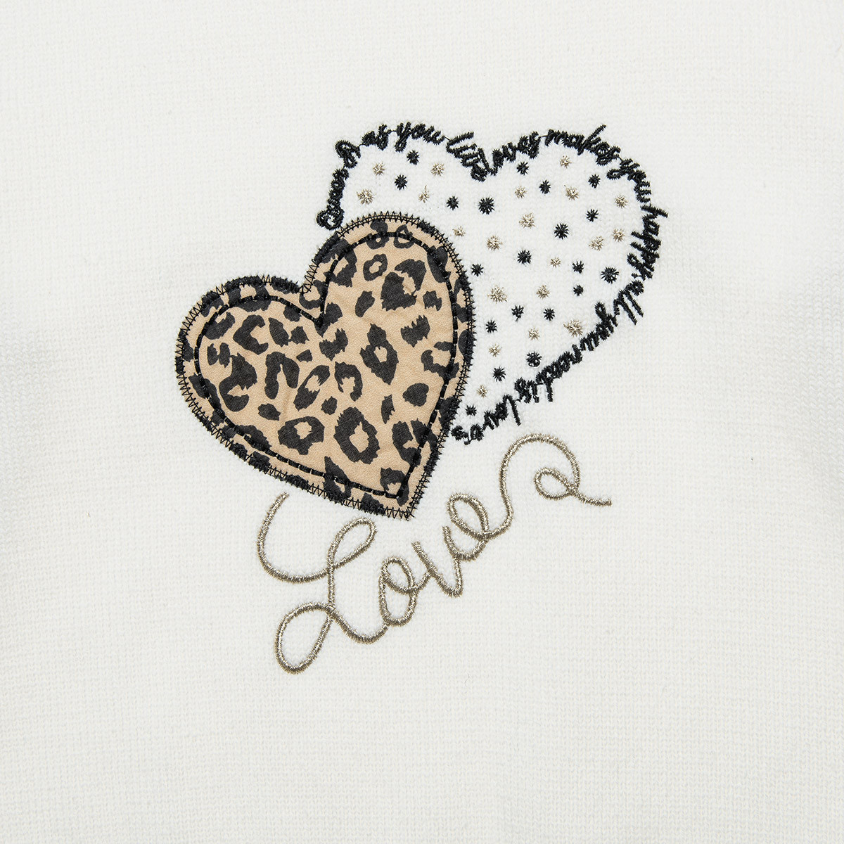Pullover with ribbed cuffs and hem and embroidery on the front decorated with gold thread.
