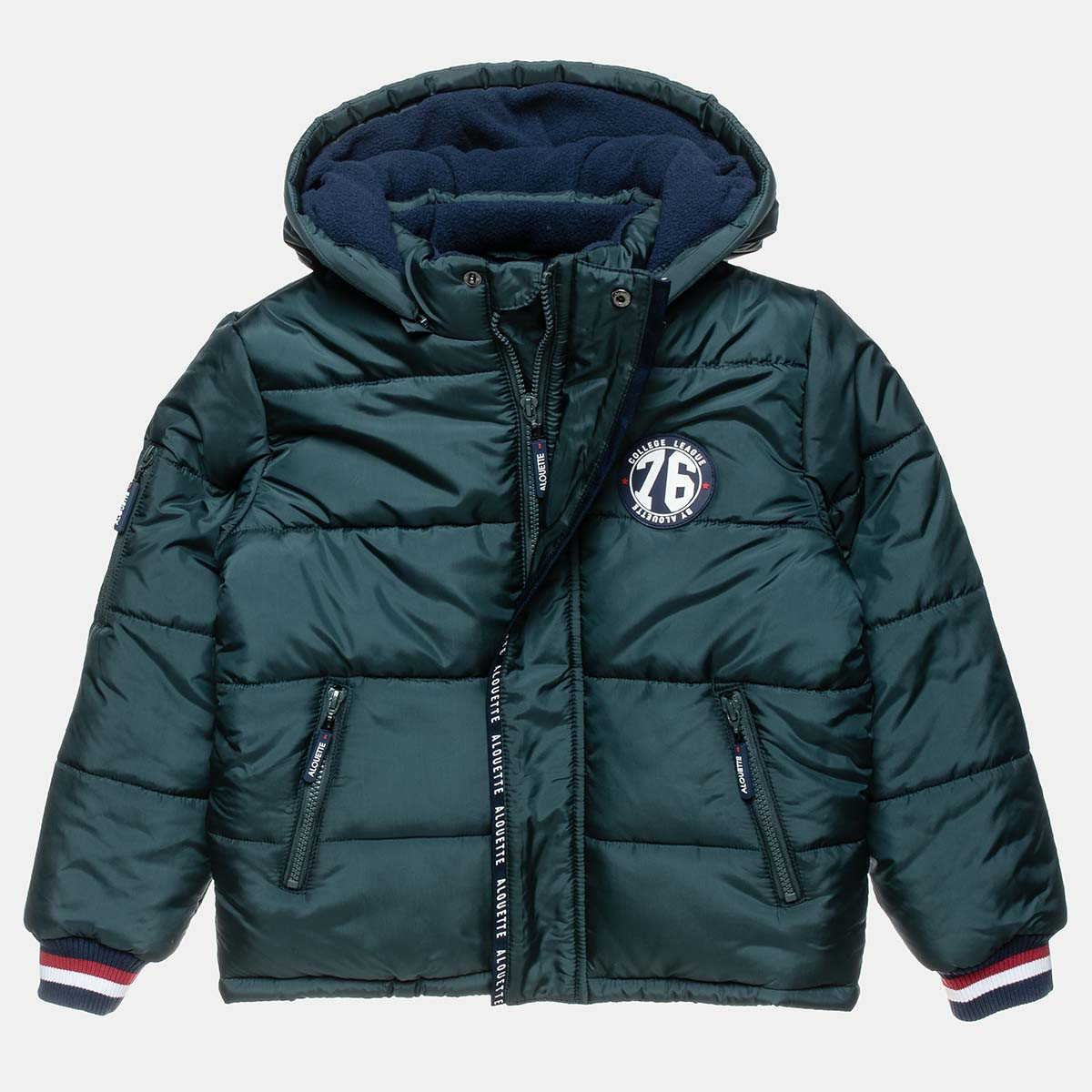 Blouse made of sweatshirt fabric with soft fluff inside for more warmth. It has a hood and a patch on the front with a towel texture. }
