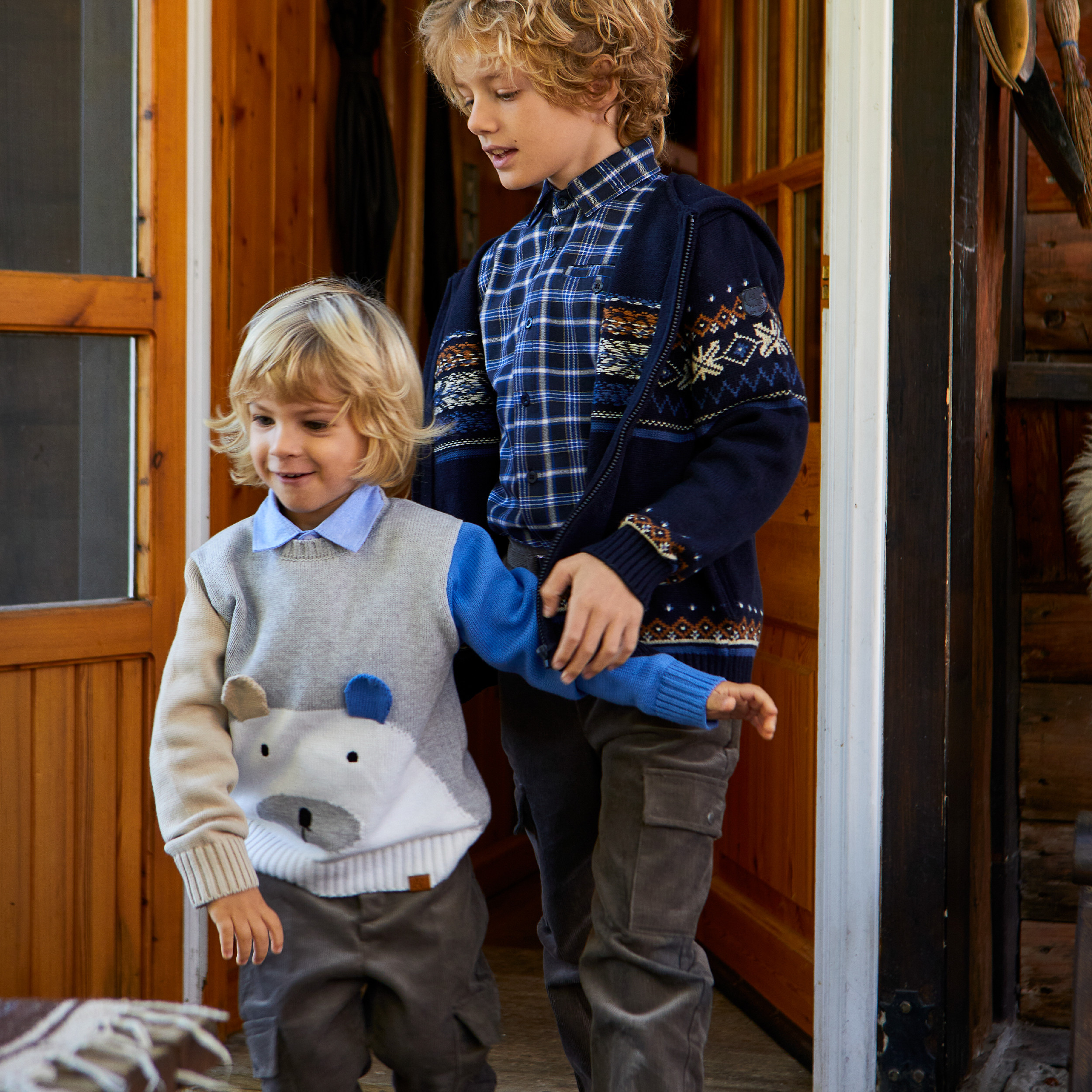 Inflatable jacket with a high neck to keep children warm in winter! Hood decorated with eco fur that can be removed. Front zipper with chin guard, patch and 2 side pockets. Lined inside with a beautiful print and a label for the child's name. Rib finish sleeve. }