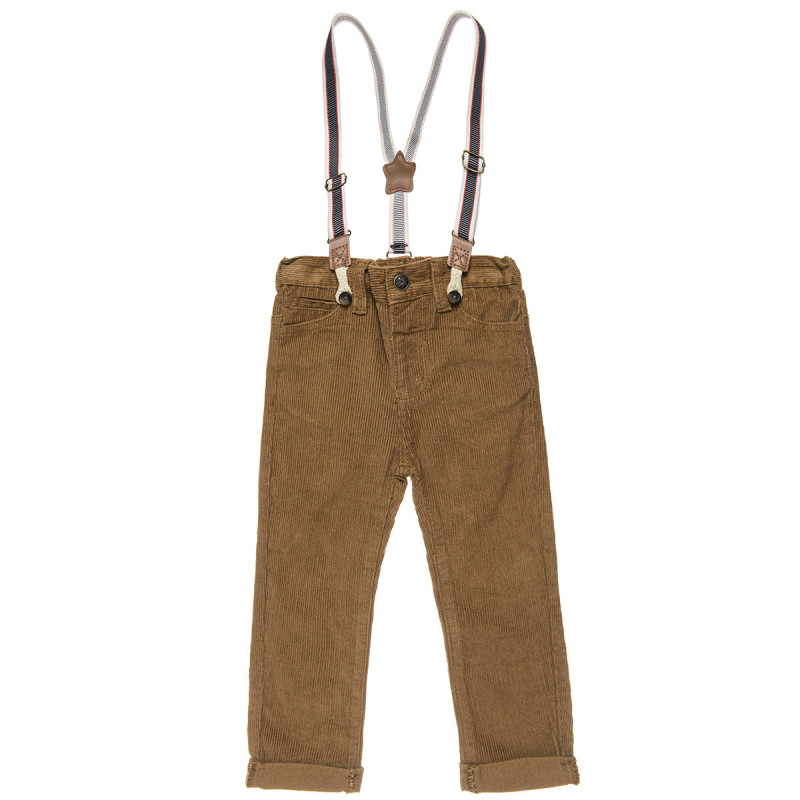 Κοτλέ παντελόνι με αποσπώμενες τιράντες.Διαθέτει δυο τσέπες μπροστά και δύο πίσω.Διατίθεται σε μπλε και καφέ χρώμα.